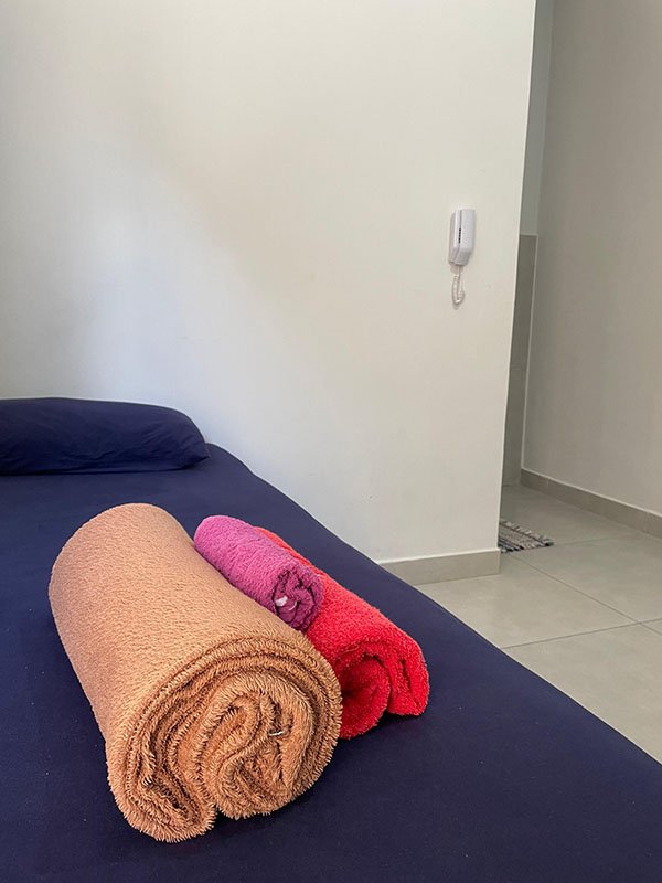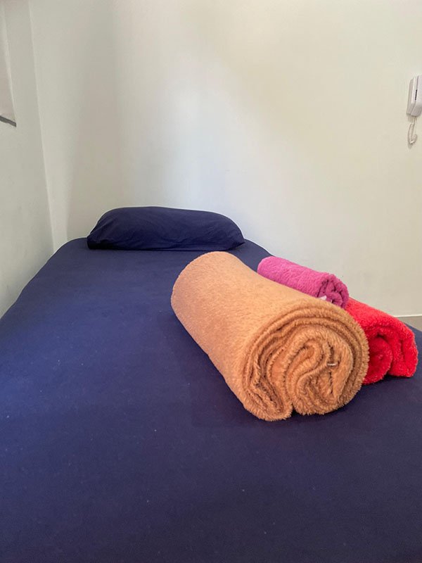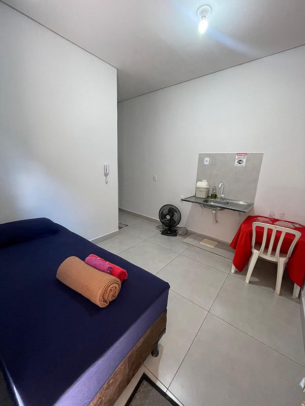 Quarto Simples Suíte simples com duas camas de solteiro, sendo uma cama Box auxiliar, roupas de cama inclusive toalhas, ventilador, internet Wi-Fi e interfone. 01 Pessoa 80,00 02 Pessoas 130,00 ONDE ESTAMOS